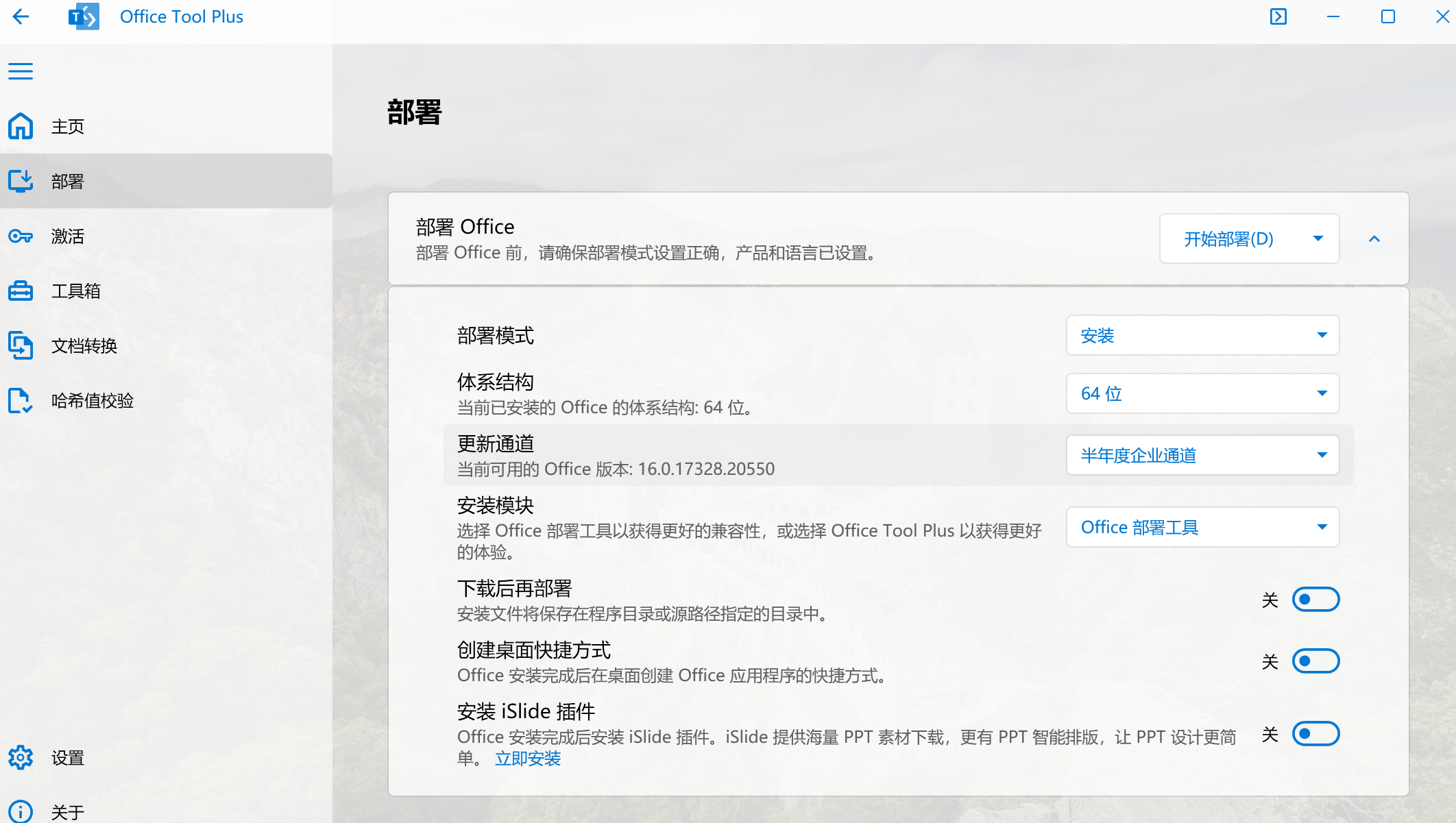 侧边栏部署➡️部署office➡️更新通道半年度企业通道