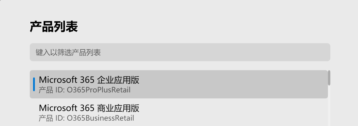⏬当前页面下拉➡️产品列表➡️选择Microsoft 365 企业应用版