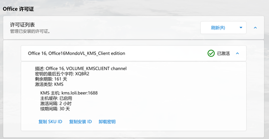 ⏬当前页面下拉➡️office许可证➡️许可证详细信息
